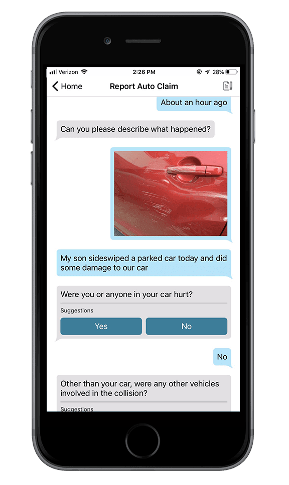 - Automated claims processing: Customers can submit auto claims directly from their mobile devices, with the system collecting the necessary details through an automated chatbot