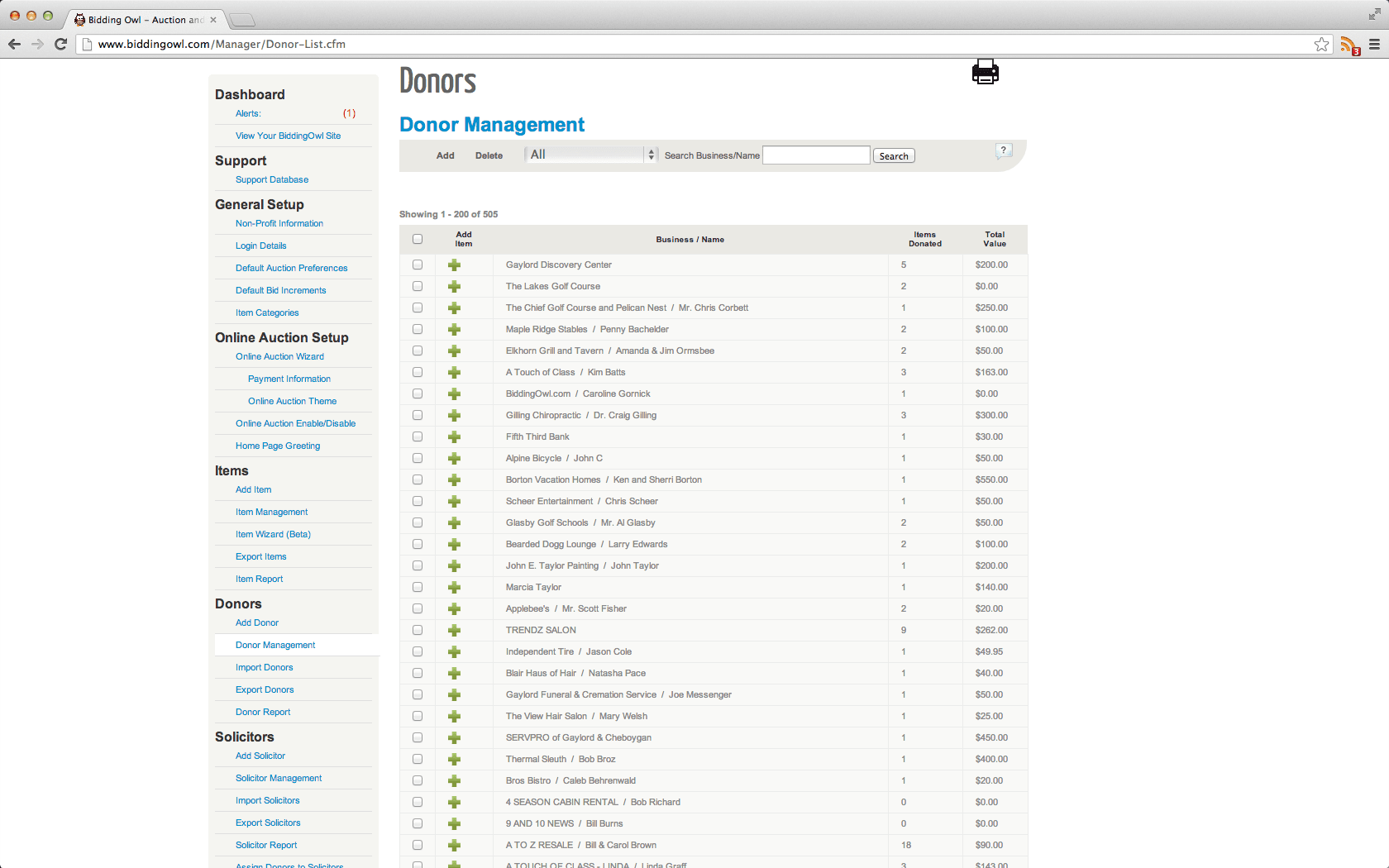 - Comprehensive management tools: The platform provides a suite of features for managing donors, items, solicitors, and auction logistics, such as bid recording, checkout management, volunteer tracking, and gift certificate printing.