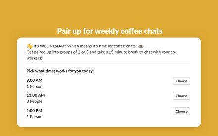 - Virtual Coffees: Facilitates one-on-one virtual coffee chats to help remote employees connect on a personal level