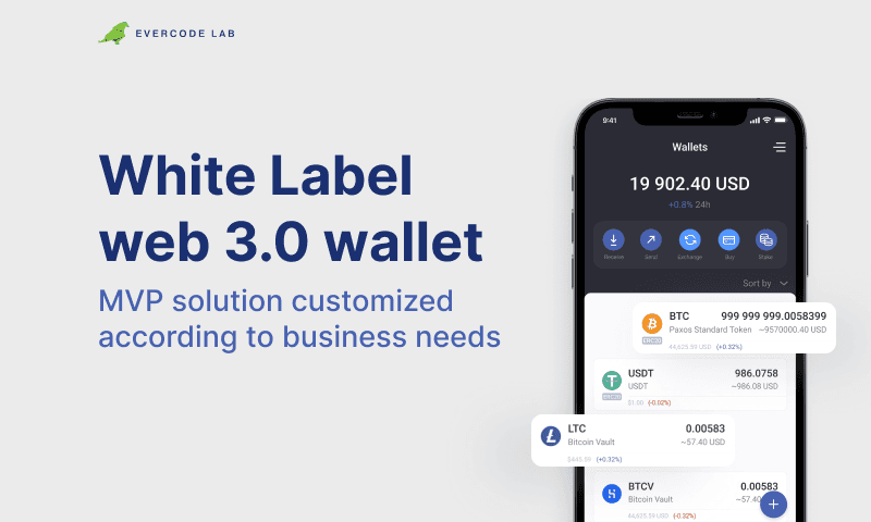 The Evercode Lab Crypto Wallet is a comprehensive non-custodial solution that enables businesses to seamlessly integrate cryptocurrency and digital asset functionality into their products. Featuring support for over 300 cryptocurrencies including Bitcoin, Ethereum, Dogecoin, Cardano, and Binance Coin, the wallet can be customized and launched under a company's own branding with a tailored user interface