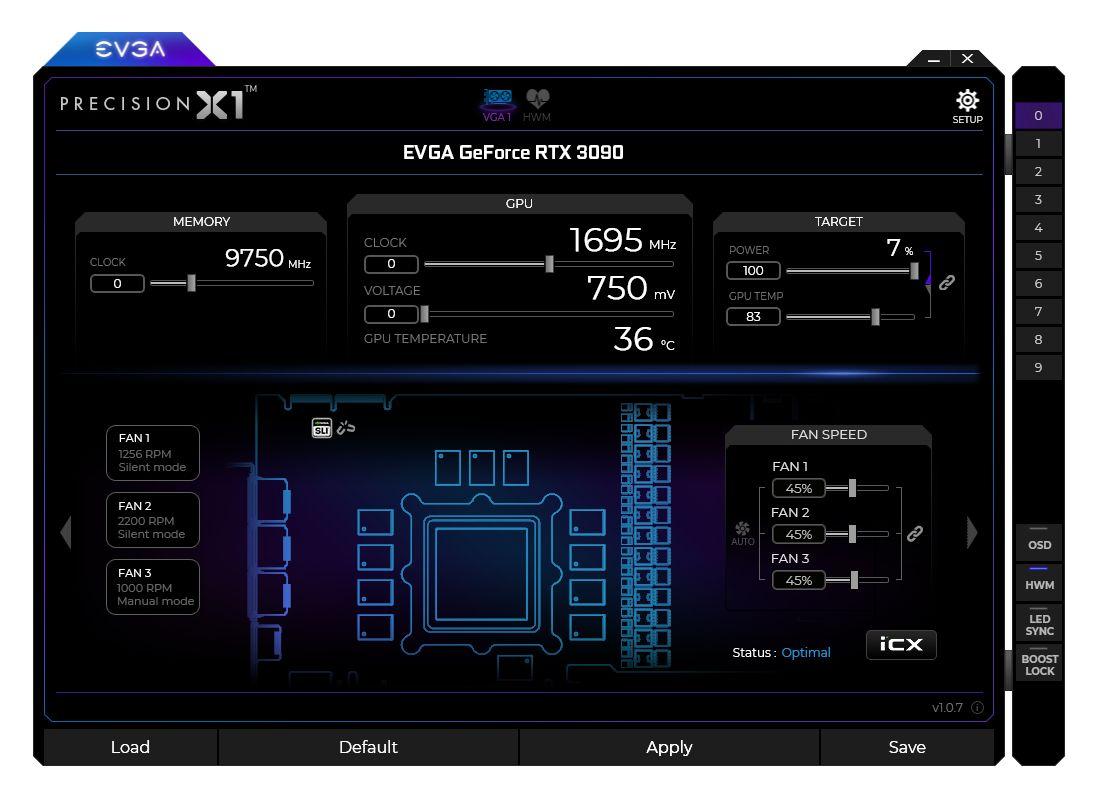 The EVGA Precision X1 is a versatile software application that empowers users to optimize the performance of their EVGA graphics cards. Its core functionalities include granular control over clock speeds for the GPU core, shaders, and memory, coupled with real-time monitoring capabilities that extend to in-game scenarios. Notably, the software boasts widespread compatibility with the majority of EVGA's graphics card lineup When paired with NVIDIA's Turing-based graphics cards, the EVGA Precision X1 unlocks even greater potential. This integration introduces a built-in overclocking scanner, enabling users to effortlessly identify the optimal frequency curve for their hardware. Additionally, the software provides intuitive RGB LED controls, allowing for seamless customization of the graphics card's visual aesthetics