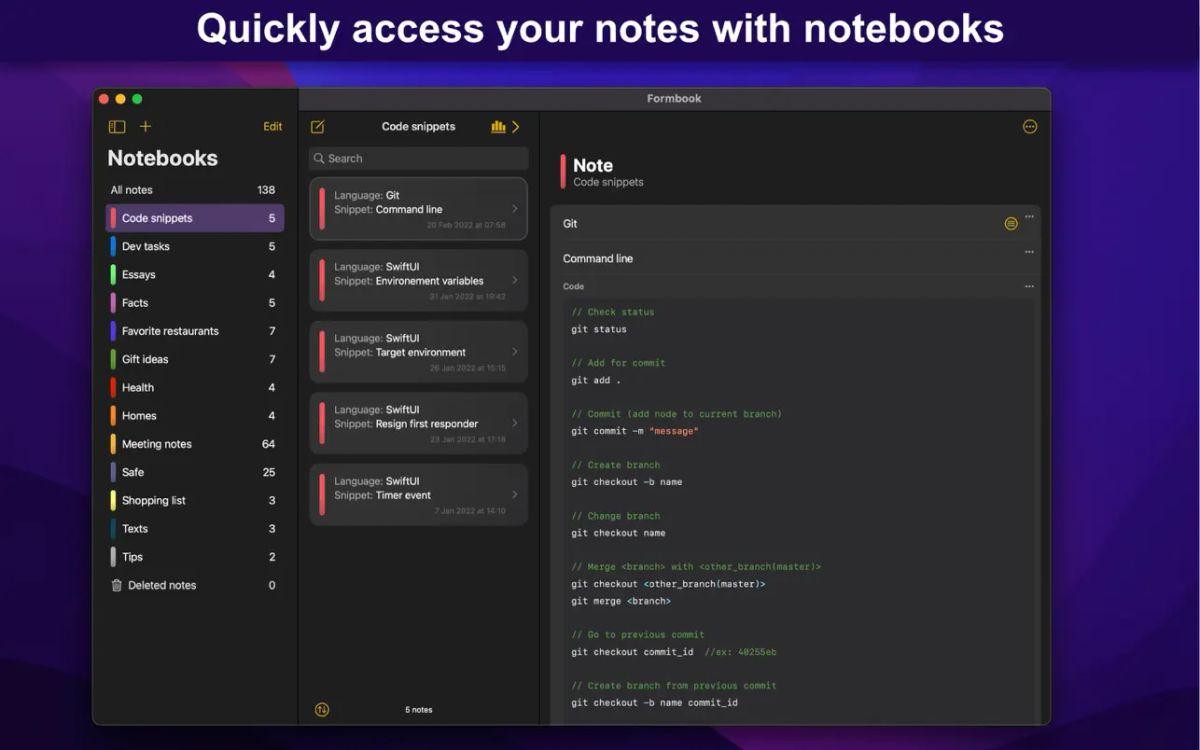 - Cross-Device Synchronization: Formbook seamlessly syncs notes and notebooks across iPhone, iPad, Mac, and Apple Watch, ensuring users' data is accessible from any device