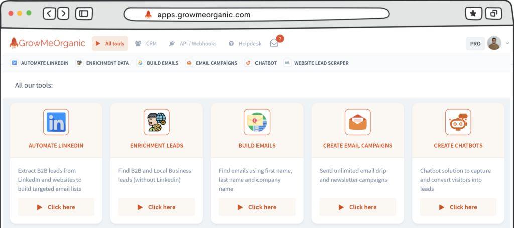 GrowMeOrganic is a comprehensive lead generation and sales automation platform designed to streamline email outreach and outbound research for sales representatives, marketers, and startups. The platform offers a suite of tools to help users identify and connect with their ideal prospects, improve email personalization, and track the performance of their outreach efforts