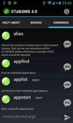 GTalkSMS is an Android application that allows users to remotely control and interact with their smartphone through the Google Talk/XMPP messaging platform. This versatile app empowers users to perform a wide range of functions on their mobile device, including sending and receiving SMS messages, making calls, locating the phone via GPS, and activating wireless networking or Bluetooth capabilities. The application is particularly beneficial for those who prefer the convenience of typing text messages on a physical keyboard rather than the smartphone's touchscreen. GTalkSMS also provides users with real-time notifications about notable events occurring on their phone, such as incoming calls or new text messages, effectively serving as a remote control and informative hub for their Android device