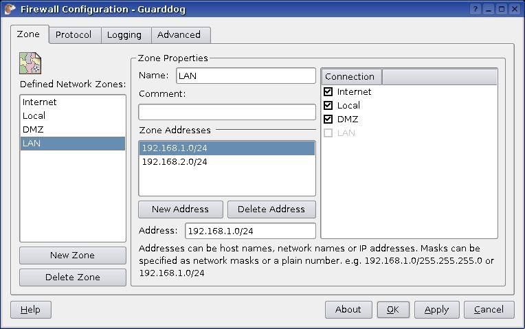 Guarddog is a firewall configuration utility for Linux systems that simplifies the process of setting up and managing a firewall. It caters to both novice and intermediate users who may not be well-versed in TCP/IP networking and security, as well as those who prefer to avoid the complexities of working with shell scripts and low-level firewall tools like ipchains or iptables. The application provides an intuitive graphical user interface (GUI) that enables users to easily configure their firewall settings, including rules for network traffic, port forwarding, and other advanced features, without the need for extensive technical knowledge