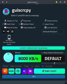 This intuitive android screen mirroring application provides a user-friendly graphical interface for the acclaimed open-source screen mirroring tool, scrcpy. Built on Python and PyQt5, this cross-platform utility seamlessly integrates the capabilities of scrcpy, enabling effortless screen casting and device control from a computer. With its streamlined design and responsive controls, users can conveniently mirror their android device's display, interact with the on-screen content, and manage their mobile experience directly from their desktop or laptop