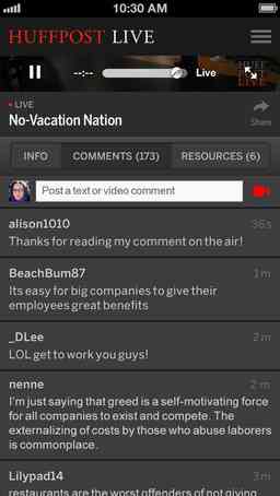 - Live, interactive discussions on HuffPost's top stories, allowing viewers to join the conversation as on-air guests