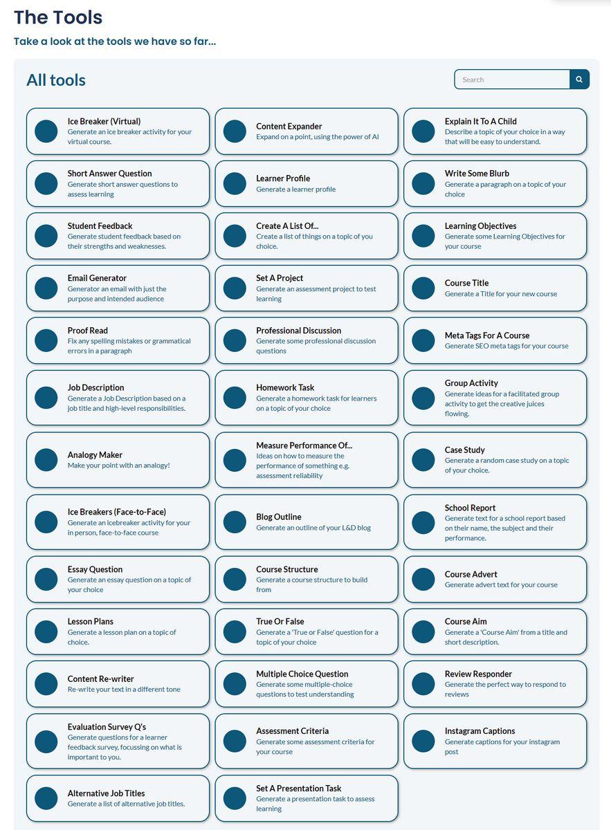 - Ability to generate learning objectives, icebreakers, and assessment questions on any topic
