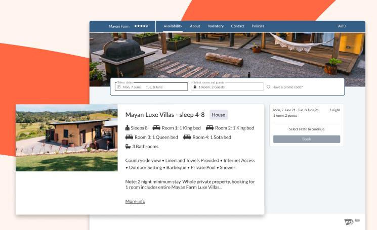 - Integrated online payments and direct booking functionality for a smooth guest experience