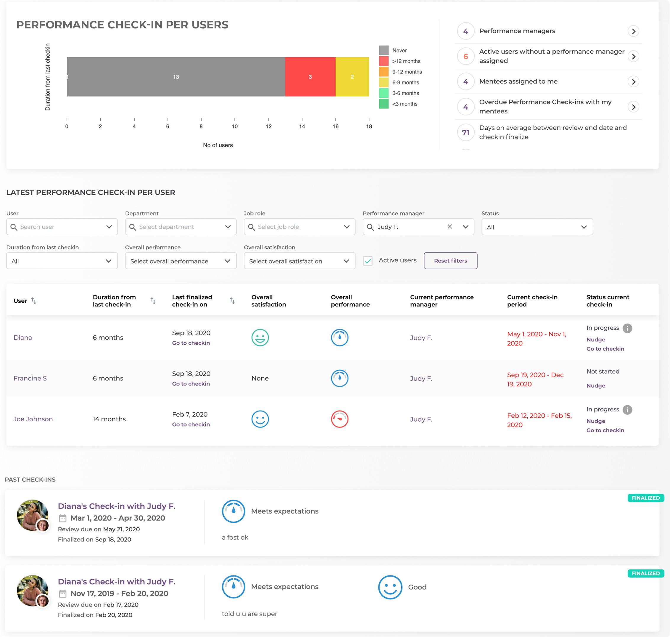 - Continuous feedback and 1-on-1 capabilities to drive employee engagement and growth