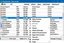 - Process management capabilities: Enables users to start, stop, pause, and resume individual processes, as well as modify their settings and registry entries
