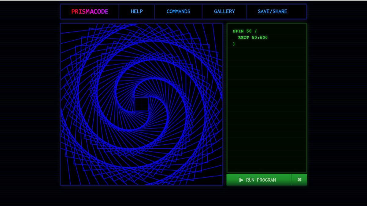 Prismacode is a programming language designed for the creation of 2D geometric graphics. It integrates logical programming constructs with artistic expression, enabling users to explore innovative visual designs without predefined rules or limitations. The language provides a unique platform where logic and creativity coexist, fostering an environment where users can experiment and discover novel graphical representations