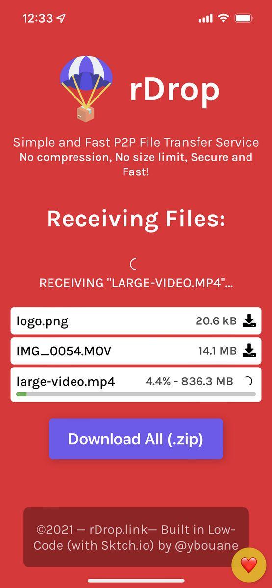 rDrop is a file transfer web application that enables seamless sharing of files across any device, operating system, or platform. It offers a hassle-free solution for transferring files without the limitations of traditional methods