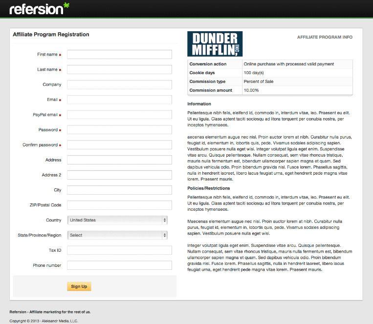 - Customizable affiliate registration: Businesses can collect essential details from new affiliates through a personalized registration page, simplifying the onboarding process