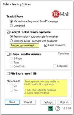 - Secure Large File Share that allows senders to easily attach and track up to 1GB of files with encryption and configurable self-purging options