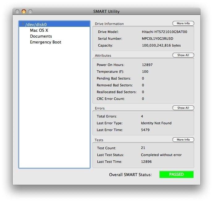 - Ability to read and display SMART diagnostic attributes for hard drives