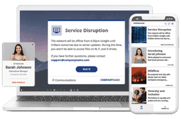 SnapComms is an internal communication software used by 2.5 million employees worldwide. It bypasses email to inform and engage every employee through dynamic, visual tools that achieve 100 message readership across desktop, digital display, and mobile devices, whether staff are working from home or the workplace. The SnapComms platform includes a range of channels that can be combined for every internal communication need from urgent notifications to awareness and behavioral change campaigns