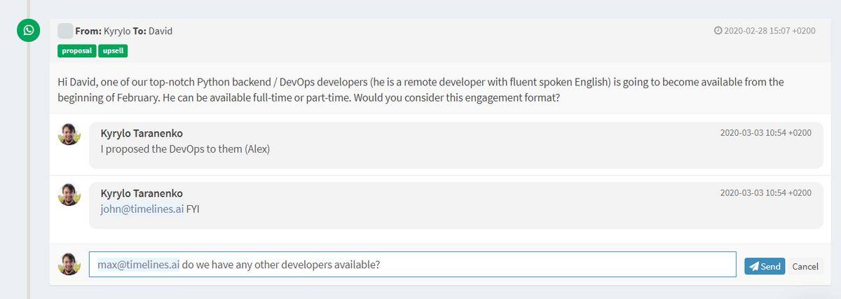 - Unified view of business communication from multiple channels (email, WhatsApp, etc.)
