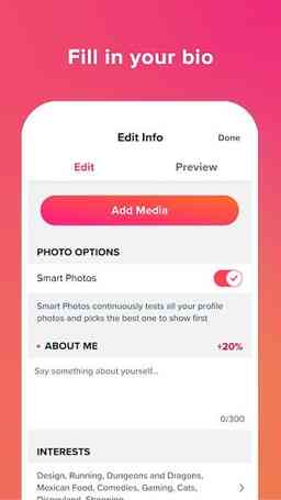 - Intuitive swiping functionality to quickly indicate interest or disinterest in potential matches