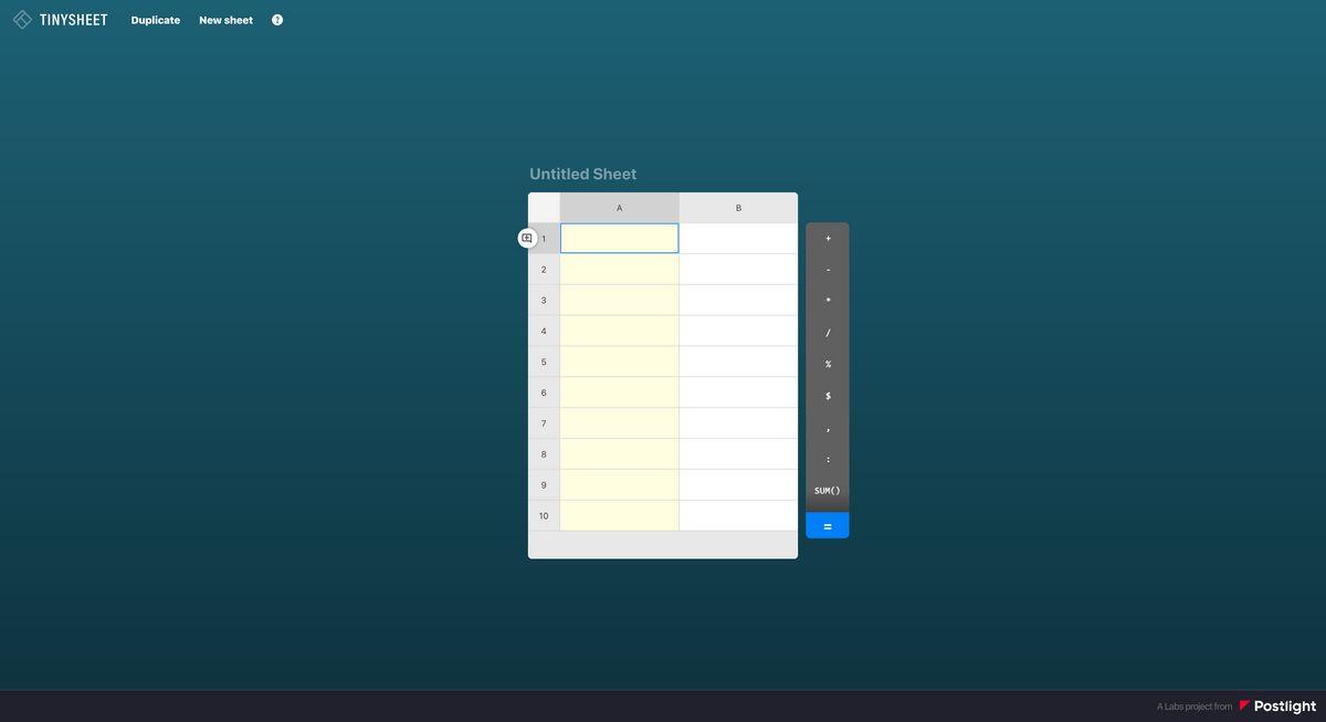A mobile-optimized spreadsheet application that provides a streamlined and private data management experience. Featuring a compact design with just the essential rows, columns, and functions, Tinysheet is tailored for efficient use on touchscreen devices. Unlike feature-packed spreadsheet software, this minimalist solution loads instantly and keeps user data completely private, as it never requires sign-ins or server storage. Tinysheet enables quick and discreet data entry, calculations, and organization right on your mobile device